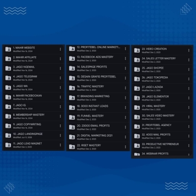 Bingung cari cara menarik pelanggan, meningkatkan penjualan, atau membangun merek di dunia digital?Paket 50 E-Course Digital Marketing ini hadir dengan materi yang mudah dipahami dan langsung bisa dipraktikkan. Sangat cocok untuk kamu yang menjalankan UMKM, freelancer, reseller, dropshipper, atau konten kreator yang ingin meningkatkan kemampuan.Cukup tonton, praktik, dan lihat hasilnya!Dapatkan akses ke video dan PDF dalam Bahasa Indonesia di HP maupun laptop.Apa yang akan kamu pelajari?
