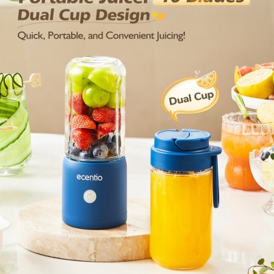 Nikmati jus segar kapan saja dengan Ecentio Portable Juicer! Dengan desain stylish berwarna biru tua, juicer ini dilengkapi dengan dua gelas kaca berkualitas serta 10 pisau stainless steel yang super tajam. Sangat praktis dan mudah dibawa, juicer ini cocok untuk dibawa ke kantor, gym, atau saat berkemah. Kapasitas 380ml-nya ideal untuk 2-3 porsi jus, cukup untuk berdua! Motor bertenaga 60W dan kecepatan hingga 16.000 RPM, membuatnya efisien dalam menghaluskan es batu dan buah beku hanya dalam 30 detik. Material premium menjamin keamanan dan ketahanan, sementara desain anti tumpah memudahkan penggunaan tanpa khawatir bocor. Didukung baterai lithium 2000mAh yang tahan lama, juicer ini bisa memproduksi jus segar hingga 15 kali sebelum perlu diisi ulang. Dapatkan juga garansi 1 tahun untuk perlindungan ekstra!