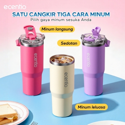 Jaga minumanmu tetap segar dengan Ecentio Tumbler! Botol ini dilengkapi dengan isolasi yang super hebat, bisa menjaga minuman panas hingga 14 jam dan dingin sampai 24 jam. Desainnya praktis dengan dua cara minum: langsung atau menggunakan sedotan. Terbuat dari stainless steel food-grade yang aman dan mudah dibersihkan, botol ini juga punya desain tahan bocor, jadi kamu tidak perlu khawatir tumpah saat mengangkutnya. Dengan pegangan yang nyaman dan kapasitas besar 900ml, tumbler ini sempurna untuk kebutuhan harianmu. Tampil stylish dengan pilihan warna pink, beige, navy, dan ungu, siap jadi teman setia di setiap momen!
