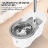 2. Buka kunci handle dan masukkan tongkat pel ke dalam ember, tekan hingga kepala mop berputar.