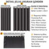 Yuk, intip gorden blackout Saffron yang cocok banget buat menambah keindahan rumahmu! ✨ Dengan lebar bahan 130 cm, gorden ini pas untuk jendela lebar 50-90 cm. Untuk jendela yang lebih lebar, bisa pesan sepasang ya! Setiap pembelian sudah termasuk bonus hook dan ikatannya, lho! Model smokring dengan 12 lubang dan 6 gelembung, serta tersedia dalam beberapa pilihan tinggi: 100 cm, 150 cm, 200 cm, 230 cm, dan 250 cm. Barang ready stock, jadi kamu nggak perlu tunggu lama. Note: Kalau butuh ukuran khusus, langsung chat aja ya. Kami siap membantu dengan sepenuh hati! 😊