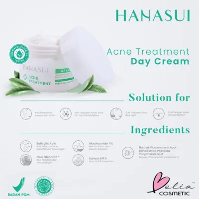 🍃 Hanasui Acne Treatment Series diformulasikan untuk kulit berjerawat dengan kombinasi Gentle Cleanser, Essence, Day Cream, Night Cream, dan Spot Gel. Membantu membersihkan pori-pori, mengurangi pertumbuhan bakteri penyebab jerawat, sekaligus menjaga kelembapan kulit agar tetap sehat.