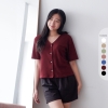 Isla Zoe Atasan Wanita Lengan Pendek Waffle – Kemeja Kekinian dengan Kancing