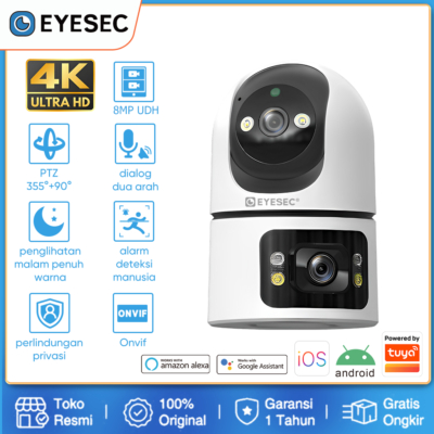 Perkenalkan Kamera Keamanan Pintar EYESEC ES0Q09! Dapatkan kemudahan memantau rumah atau kantor Anda dengan teknologi canggih ini. Dapat terhubung melalui aplikasi Tuya yang mudah digunakan, baik di iOS maupun Android. Kamera ini memiliki resolusi Full HD 8MP serta dua lensa dengan pandangan lebar 355° secara horizontal dan 90° secara vertikal. Dengan fitur deteksi AI yang cerdas, Anda dapat memantau objek-objek penting seperti manusia, hewan peliharaan, dan kendaraan dengan notifikasi langsung ke ponsel Anda. Namun itu bukan semua - kamera ini juga dilengkapi dengan penglihatan malam yang luar biasa, kualitas suara jernih untuk percakapan dua arah, dan fungsi alarm yang membuat Anda selalu terhubung dengan keamanan rumah Anda. Nikmati rekaman berkualitas tinggi dengan penyimpanan fleksibel hingga 128GB dan tampilan real-time dari berbagai perangkat. Sempurnakan keamanan Anda hari ini!