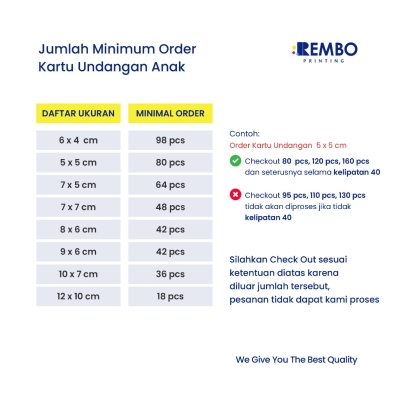 Yuk, maksimalkan setiap momen spesial dengan Kartu Ucapan Terima Kasih Kustom dari kami! Kartu ini terbuat dari bahan berkualitas seperti Art Carton 260 gsm dan Ivory 270 gsm. Tersedia opsi depan belakang halus yang dapat ditulis menggunakan pulpen dengan permukaan glossy putih serta kuning gading yang elegan!Kami menawarkan beberapa ukuran dan pilihan laminasi, mulai dari yang tidak terlaminasi, glossy, hingga doff. Setiap kartu sudah dipotong satuan, dan kami juga menyediakan template desain yang bisa kamu pilih (maksimal 3 template!).Mau menggunakan desain sendiri? Pastikan semua file siap cetak, dan hubungi kami untuk konfirmasi. Kami memproses desain dengan sangat serius, jadi cek preview yang kami kirim dan pastikan semuanya sesuai!Kami juga menawarkan garansi klaim produk dalam batas waktu tertentu dan memastikan semua petunjuk kami ikuti saat bertransaksi. Beli produk ini berarti setuju dengan semua peraturan yang berlaku ya!