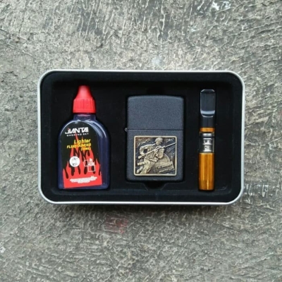 Dapatkan Korek Api Sumbu Set dengan desain motif naga timbul yang sangat menarik! Dalam paket ini, sudah termasuk minyak dan pipa rokok yang siap pakai. Pengiriman hanya untuk pulau Jawa dan Jabodetabek dengan motif yang akan dikirim secara acak sesuai stok terbaik kami. Mohon maaf, untuk pengiriman ke luar pulau Jawa tidak bisa menyertakan minyak, agar paket Anda aman sampai tanpa kendala di pemeriksaan Bandara.