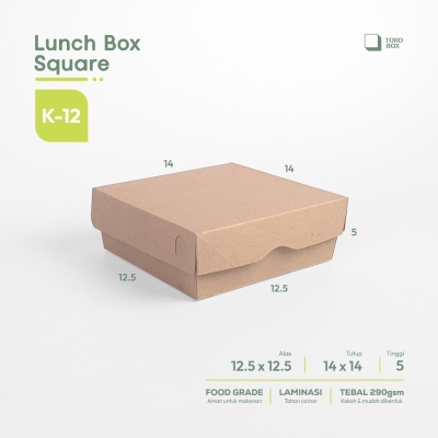 Beranda » Product » Kotak Makan Kertas Persegi K12 | 12.5×12.5×5 | Kemasan Makanan Anti Air | Tebal & Kuat 290gsm