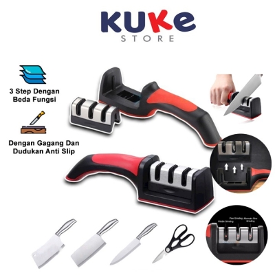 KUKE Alat Asah Pisau & Gunting 3 Tahap – Pengasah Anti Slip
