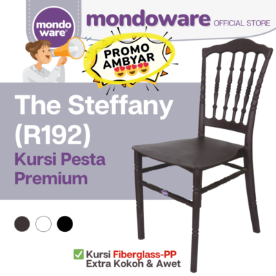 Kenali Kursi Pesta R192 (The Steffany) dari Mondoware! Kursi ini adalah pilihan sempurna untuk menambah sentuhan elegan di setiap acara. Dibuat dengan bahan fiber-glass reinforced polypropylene, kursi ini lebih kokoh, berat, dan tahan lama dibandingkan plastik biasa.Spesifikasi unggul: