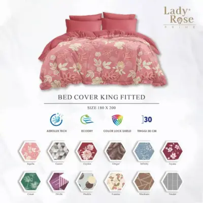 • Beranda » Product » Lady Rose Prime Bedcover Set King Ukuran 180×200 Tinggi 30cm Sprei Fitted Motif Elegan Premium