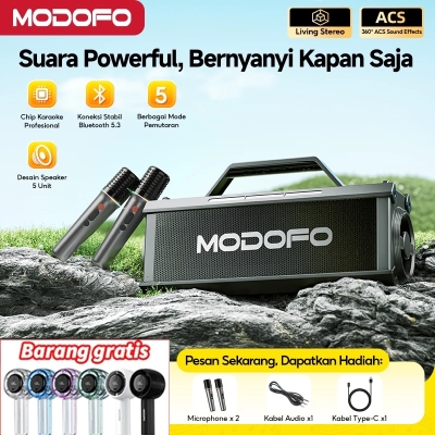 Nikmati keseruan bernyanyi di mana saja dengan MODOFO A22, speaker karaoke Bluetooth yang siap memeriahkan suasana! Ditenagai oleh output 60W dan teknologi audio mutakhir, speaker ini menghadirkan suara yang jelas dan bass yang dalam, cocok untuk segala jenis acara, mulai dari kumpul-kumpul santai hingga pesta besar.Dengan dual mikrofon nirkabel yang dilengkapi fitur pengurangan noise dan anti-feedback, vokal Anda akan terdengar lebih jernih. MODOFO A22 juga mendukung berbagai opsi pemutaran, termasuk Bluetooth 5.3, kartu TF, USB drive, dan radio FM, sehingga Anda bisa menikmati musik dengan cara yang paling mudah.Fasilitas kontrol EQ dan efek suara memberikan Anda kebebasan untuk menyesuaikan suara sesuai selera. Baterai 7200mAh yang dapat diisi ulang memungkinkan Anda menggunakannya dalam waktu lama, ditambah desain portabelnya yang nyaman untuk dibawa ke mana saja. Jadikan MODOFO A22 teman setia di setiap momen seru Anda!