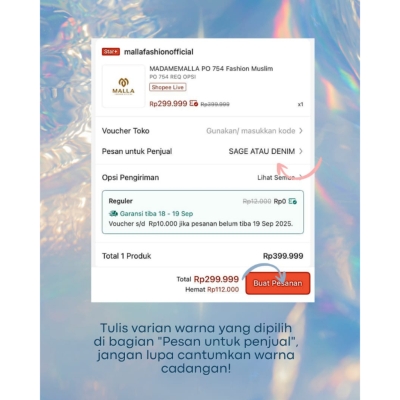 Dapatkan mukena stylish ini dengan pemesanan pre-order, dikirim dalam waktu 2-4 minggu. Pastikan untuk menyertakan pilihan warna favoritmu di catatan sebelum checkout ya!Sebelum membeli, yuk cek ukuran yang sesuai dengan panduan ukuran kami. Mukena ini cocok untuk semua ukuran, sangat pas baik untuk dewasa maupun remaja yang memiliki berat badan antara 40-80 kg. Dengan toleransi ukuran yang minimal, ini benar-benar bisa jadi pilihan tepat!Semua foto yang kami tampilkan adalah hasil jepretan asli (real pict) dari model kami yang mengenakan mukena ini. Warna bisa sedikit berbeda tergantung pencahayaan saat pemotretan, jadi tetap perhatikan ya!Kami sangat peduli dengan pengalaman belanja kamu, jadi pastikan kamu membaca informasi penting tentang retur dan penanganan barang dengan baik. Jika ada kendala, segera hubungi kami sebelum memberi rating. Kami siap membantu menyelesaikan setiap permasalahan!Perawatan mukena ini juga sangat mudah. Hindari sikat keras, mesin cuci untuk beberapa model, dan jangan terlalu lama direndam. Setrika pada suhu maksimum 150°C untuk menjaga keindahan mukena ini.Untuk customer service, kami siap membantu setiap hari Senin hingga Minggu. Happy shopping, ya!