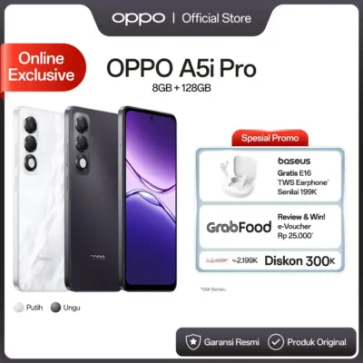 👉 Segera miliki OPPO A5i Pro 8GB RAM 128GB sekarang juga dengan harga terbaik. Klik Beli Sekarang sebelum stok habis!