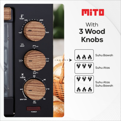 Kenalan dengan Oven Listrik Mito MO777, oven keren dengan desain knob dan handle kayu yang menawan! Dapatkan hasil panggangan yang sempurna berkat teknologi diamond shape yang merata dan 4 elemen pemanas, jadi kamu gak perlu repot putar loyang saat memanggang!Dengan ketahanan daya rendah, oven ini punya setting untuk memanaskan dari atas (350 W), bawah (350 W), atau keduanya sekaligus (700 W). Suhu bisa diatur antara 100℃ hingga 250℃, kamu tinggal pilih waktu memasak, tunggu bunyi bell-nya saat selesai. Kapasitasnya 22 liter, cocok untuk berbagai jenis masakan! MO777 sangat mudah dibersihkan dan digunakan.