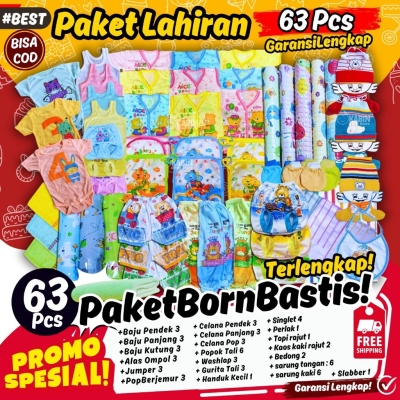 Sambut kehadiran si kecil dengan Paket Perlengkapan Bayi Baru Lahir! Kami menawarkan beragam perlengkapan bayi yang lengkap dan terjangkau, cocok sebagai kado lahiran. Paket ini hadir untuk memenuhi segala kebutuhan bayi di hari-hari pertamanya. Terdapat dalam beberapa varian sehingga kamu bisa memilih sesuai kebutuhan. Semua item sudah disesuaikan untuk memberikan kenyamanan dan kepraktisan dalam menjaga bayi.**Jangan lewatkan paket-paket unggulan kami:**1. **Paket 63 Terlengkap**: Baju, celana, popok, sampai topi, semua ada di sini!