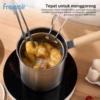 - **Set terdiri dari:** Penggorengan, saringan minyak, tutup kaca, dan penjepit stainless steel.