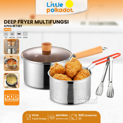 Nikmati kemudahan menggoreng dengan Panci Penggoreng 20 cm yang dirancang khusus untuk Anda! Panci ini memiliki tutup yang dapat mencegah percikan minyak, menjaga area memasak Anda tetap bersih dan aman. Selain itu, dilengkapi dengan saringan yang memudahkan Anda mengalirkan minyak setelah menggoreng, sehingga minyak tetap bersih dan sisa makanan terbuang dengan mudah. Dengan capitan yang nyaman, Anda bisa mengangkat panci ini tanpa khawatir tergelincir atau terbakar. Gagang kayunya yang tidak mudah panas juga memberikan pegangan yang aman dan nyaman saat digunakan. Ukuran panci ini pas untuk berbagai kebutuhan penggorengan, baik untuk di rumah maupun untuk usaha kecil. Dapatkan juga paket lengkap dengan saringan, capitan, dan tutup panci.Catatan: Mohon lakukan video unboxing saat paket diterima dan cek barang sebelum checkout!