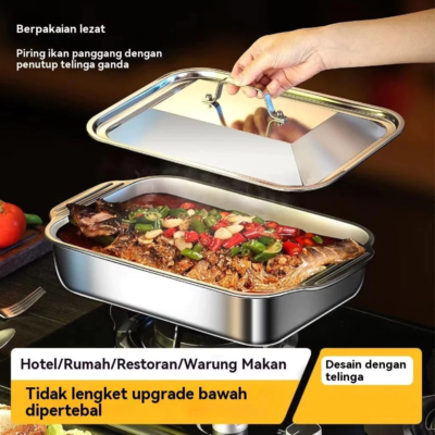 Dengan harga per pcs, produk ini dilengkapi dengan penutup. Terbuat dari bahan stainless steel tebal SUS 304 yang sudah bersertifikat Food Grade, panci ini tahan panas dan anti lengket. Kualitas nomor satu untuk Anda! Foto yang ditampilkan adalah hasil jepretan langsung dari produk jadi, jadi Anda tidak perlu ragu. Panci ini sangat fungsional untuk memasak berbagai hidangan, mulai dari ikan panggang, ayam panggang, sayur lauk, sayur sup, hingga masakan lainnya. Desain persegi dari stainless steel kelas makanan ini cocok untuk penggunaan komersial di dapur, dan bisa digunakan di kompor induksi maupun gas. Ukuran panci ini adalah 40 cm dengan kapasitas wadah 4.3 liter, panjang 40 cm, lebar 24 cm, dan tinggi 8 cm.