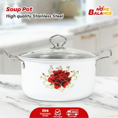 Selamat datang di Home Balance! Segera lengkapi dapur Anda dengan Panci Sup Stainless Steel Floral Premium yang menawarkan sentuhan elegan dengan desain bunga yang cantik. Dibuat dari material Stainless Steel 304 yang berkualitas, panci ini anti karat dan sangat aman untuk memasak. Didesain khusus untuk kebutuhan sehari-hari, panci ini kokoh dan bisa menghantarkan panas secara merata, membuat masakan Anda lebih sempurna.Dengan berbagai ukuran mulai dari 7,5 × 16 cm hingga 12 × 24 cm, panci ini ideal untuk merebus, memasak sup, sayur, dan berbagai keperluan memasak lainnya. Tutup kaca yang kuat dan pegangan ergonomis memudahkan penggunaan. Mudah dibersihkan dan tahan lama, panci ini adalah pilihan sempurna untuk perlengkapan dapur Anda dan bisa juga dijadikan hadiah yang berkesan!