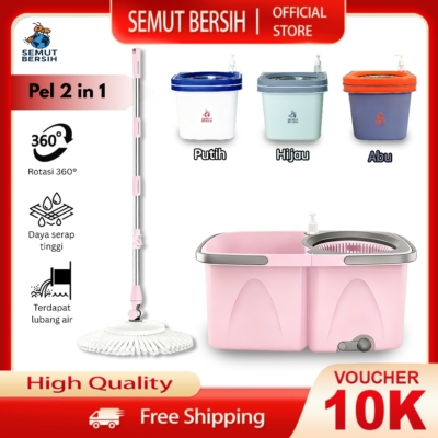 Pel Lantai 2 in 1 SEMUT BERSIH – Spin Mop Multifungsi