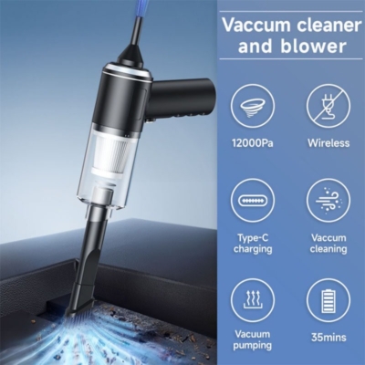 Selamat datang di masa depan pembersihan! Penyedot Debu Tanpa Kabel ini memiliki daya hisap yang mengesankan hingga 12000Pa, memudahkan Anda membersihkan mendalam di rumah dan mobil. Nirkabel dan portabel, alat ini sangat mudah dibawa kemanapun. Dengan multifungsi, Anda bisa mengatasi bulu hewan peliharaan, remah-remah makanan, hingga debu di berbagai tempat. Ditenagai dengan baterai lithium-ion yang besar, isinya dapat diisi ulang melalui USB, memberikan waktu kerja hingga 25 menit. Filter berkualitas tinggi dapat menyaring PM2.5 dan dapat dicuci untuk digunakan kembali. Nikmati garansi 3 tahun dan layanan purna jual yang responsif!