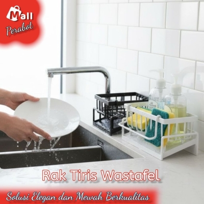 Sambut kerapian yang elegan di dapur dan kamar mandi Anda dengan Rak Tiris Wastafel dari Mall Perabot! Dengan desain minimalis yang terlihat mewah, rak ini sangat praktis untuk menyimpan sabun, spons, sikat gigi, perlengkapan mandi, dan botol cairan cuci piring agar selalu bersih dan cepat kering.\n\n**Kelebihan Utama:**\n* **Desain Anti-Air & Tiris Cepat** - Alas tirisnya mencegah genangan air, menjaga perlengkapan tetap kering dan higienis.\n* **Kuat & Kokoh** - Dibuat dari plastik berkualitas yang tahan lama dan anti karat, ideal untuk area basah.\n* **Mudah Dipasang** - Praktis, cukup tempel di dinding tanpa perlu bor, cocok untuk kamar mandi maupun dapur.\n* **Multifungsi** - Sempurna untuk menyimpan sabun batang, sabun cair, spons, sikat gigi, odol, botol kecil, dan alat mandi lainnya.\n* **Desain Elegan** - Tersedia dalam warna hitam dan putih, mudah dipadupadankan dengan berbagai gaya interior.\n\n**Manfaat:**\n- Menjaga area wastafel tetap rapi\n- Mempercepat proses pengeringan perlengkapan\n- Mengurangi bakteri dari genangan air\n- Menambah kesan estetik di ruang cuci atau kamar mandi\n\nBerat: 200gr\n\n*Catatan:* Kiriman sesuai varian yang diorder. Tidak menerima perubahan via chat atau catatan. Untuk produk yang pecah atau rusak selama pengiriman, bisa di klaim ke pihak ekspedisi. Komplain tanpa video unboxing tidak akan diterima. Selamat berbelanja!