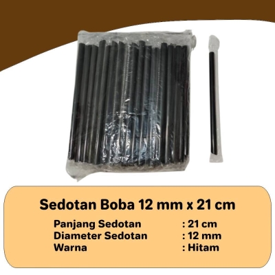 Siap menyajikan minuman favoritmu dengan sedotan boba hitam yang stylish! Dengan ukuran ideal 12mm dan panjang 21cm, sedotan ini sangat pas untuk menikmati boba milk tea. Setiap pack berisi 100 sedotan, jadi kamu bisa hemat dan siap sedia untuk usaha atau kebutuhan pribadi. Warna hitamnya memberikan sentuhan elegan dan modern pada setiap minuman yang kamu sajikan.