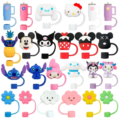 Sedotan Silikon Karakter Lucu Sanrio & Disney 10mm – Penutup Unik untuk Anak