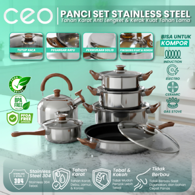 Kenalan dengan Set Panci CEO 6 Pcs yang siap jadi andalan di dapurmu! Dengan bahan stainless steel 304 yang super kuat dan awet, set ini sempurna buat masak segala macam hidangan, dari rebusan hingga tumisan. Set ini sudah BPA Free dan aman buat makanan, juga bisa masuk microwave, jadi kamu gak perlu khawatir saat memanaskan makanan. Dengan tepi mulus yang anti tumpah dan gagang yang nyaman digenggam, masak jadi lebih menyenangkan! Berbagai ukuran panci siap menemani semua kegiatan dapurmu, bikin masakan jadi merata dan nikmat. Cocok untuk jamuan keluarga, meal prep mingguan, atau masakan cepat setelah pulang kerja. Yuk, bawa pulang suasana masakan rumahan yang hangat dan menggugah selera!