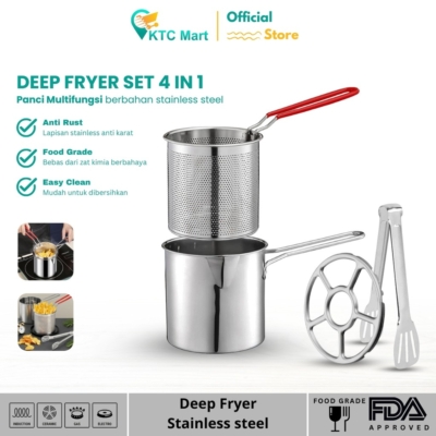 Mau masak dengan lebih praktis? Kenalan dengan Set Panci Goreng 4in1 yang terbuat dari stainless steel berkualitas ini! Dengan kapasitas 1300ml, panci ini siap menemani segala aktivitas masak kamu, mulai dari menggoreng kentang hingga merebus mie instant kesukaan. Komplet dengan saringan, tatakan kompor, dan penjepit makanan, semua bisa kamu dapatkan dalam satu paket. Desainnya yang tahan panas dan anti karat membuat panci ini awet dan mudah dibersihkan. Cocok dipakai di semua jenis kompor, baik listrik maupun konvensional. Dapatkan sensasi masak yang lebih nyaman dan higienis!