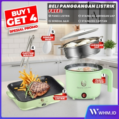 Nikmati pengalaman memasak yang lebih praktis dan menyenangkan dengan Set Panggangan Elektrik dan Panci Multifungsi! Tersedia dalam 3 varian menarik, Anda bisa memilih sesuai kebutuhan. Varian pertama dan kedua: Panggangan Panjang dengan pilihan Kukusan, yang dilengkapi dengan Panci Listrik. Terdapat Panggangan Elektrik Panjang 600W, Capitan stainless steel, Panci Listrik 450W, Sendok Nasi, dan kabel colokan. Sedangkan untuk varian ketiga dan keempat: Panggangan Bulat dengan Panci, juga bisa dipilih dengan atau tanpa Kukusan, dengan Panggangan Elektrik Bulat 600W, Tutup Kaca, Capitan stainless steel, dan paket yang sama dengan sebelumnya. Panggangan kami menggunakan bahan baja anti karat serta lapisan anti lengket yang membuat masakan tidak lengket. Panas cepat merata, sempurna untuk daging, ikan, sayuran, dan roti. Panci listriknya ideal untuk merebus, mengukus, atau memasak aneka hidangan. Kenyamanan unboxing juga kami jaga, pastikan Anda merekam video saat membuka produk untuk memudahkan jika terjadi masalah. Pembelian yang cerdas dan terjamin!