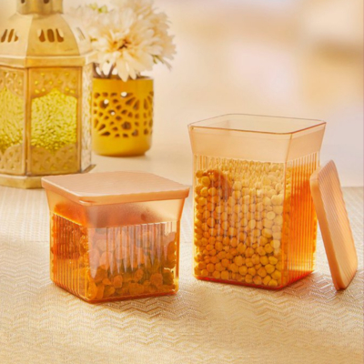 Tingkatkan presentasi makananmu dengan Set Tupperware Family Mate Square Gold - terdiri dari 2 pcs (510ml + 800ml) dengan desain glamor yang berkilau seperti kristal dan sentuhan warna emas yang anggun. Sangat ideal untuk menyimpan dan menyajikan kue Lebaran seperti nastar, kastengel, dan putri salju, membuat camilanmu tetap renyah dan fresh lebih lama.Wadah ini kedap udara, ringan, dan kuat, dibuat dari bahan food grade, serta dapat ditumpuk agar dapur terlihat lebih rapi dan estetik. Perfect untuk menambah stok makanan di dapur atau bisa juga dijadikan hampers Lebaran yang cantik dan berkualitas!