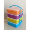 Mau piknik seru tanpa khawatir makanan tumpah? Kenalan dengan Set Wadah Makan Piknik 4 Susun! Dengan kombinasi warna-warni cerah, wadah ini terdiri dari 4 buah yang sama ukuran, siap menampung semua makanan kesukaanmu. Kapasitas masing-masing wadah adalah 900ml dengan ukuran 16.4x16.4x6 cm.Dilengkapi seal ketat yang menjaga kesegaran makanan dan mencegah tumpah, wadah ini sangat cocok untuk membawa salad segar, mie goreng, tofu lada hitam, hingga gurami goreng saat piknik keluarga. Desain uniknya memungkinkan wadah disusun rapi, dan seal-nya yang bercekung mengunci wadah di atasnya.Bawa semua makanan dalam satu genggaman praktis berkat cariolier yang berfungsi sebagai handle. Cukup kaitkan di setiap handle lunchbox, dan siap berangkat piknik! Cocok juga untuk menu bento kesukaan anak-anak. Pilihan sempurna untuk menikmati momen berkualitas dengan keluarga!