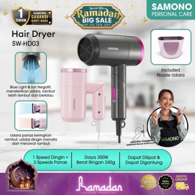 Rambut kering? Tidak lagi! Dengan Sisir Peniup Rambut SAMONO SW-HD03, rambutmu akan terasa sehat dan berkilau setiap hari. Menggunakan teknologi canggih dengan cahaya biru dan ion negatif, produk ini menjaga kelembapan rambut serta mengurangi listrik statis agar rambutmu tetap halus tanpa kusut.Dapatkan manfaat lebih dengan daya rendah hanya 300W yang hemat energi. Dengan suhu konstan, proses pengeringan rambut jadi lebih aman dan efisien.Desain pegangan lipatnya yang praktis sangat ringan, hanya 240g, membuatnya mudah dibawa bepergian. Di samping itu, perlindungan ganda seperti Overheat Protection dan Sekring Protection menjadikan penggunaan lebih nyaman tanpa khawatir. Aliran udara kuat memudahkan pengeringan lebih cepat untuk hasil yang maksimal!