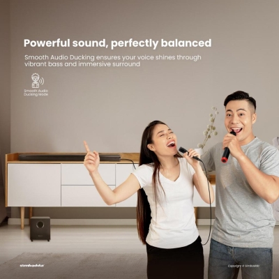 Buat pengalaman nonton di rumahmu jadi lebih seru dengan Soundbar & Subwoofer CST 903N+ Therion Bass. Ditenagai power 55W RMS dengan desain compact, sistem audio ini siap memanjakan telingamu tanpa mengorbankan tampilan ruang. Cocok banget untuk kamu yang love dengan desain minimalis tapi tetap pengen suara yang mantap. Berkat teknologi Vibass dan echo space soundstage, suara jadi lebih mendalam, jernih, dan bikin kamu seakan terbenam dalam setiap momen. Udah dilengkapi dengan 1 mikrofon VHF nirkabel dan 1 mikrofon kabel, ditambah fitur smooth audio ducking, pengalaman karaoke jadi lebih fleksibel dan praktis. Semua bisa kamu kontrol dengan remote yang mudah digunakan!